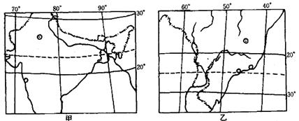 C.四国的城市都分布在沿海 D.乙、丙、丁三国的最大港口皆受到暖流的影响