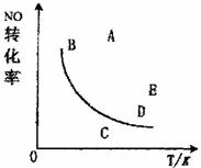 与温度的关系曲线,图上的A、B、C、D、E五点其中表示未达平衡状态且V正>V逆的是 ( )
