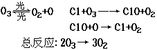 在上述臭氧变成氧气的反应过程中,Cl的作用是:_______________,写出上述 反应的总反应方程式为:_______________________________________________