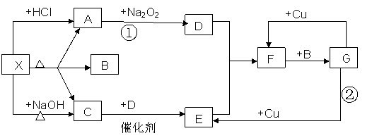 (1)物质X可以是______________________,C 是____________,F是____________. (2)反应①化学方程式是________________________________________________ (3)反应②的离子方程式是______________________________________________