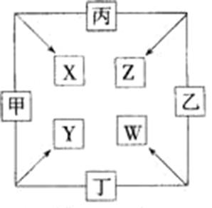 22.(8分) 甲、乙、丙、丁四种单质在点燃条件下反应生成X、Y、Z、W四种化合物,转化关系如图所示,又知: