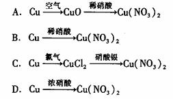 24.用金属铜制取硝酸铜,从节约原料和防止污染综合考虑,最好的方法是