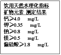 下图为农夫山泉矿泉水瓶上的部分说明文字,列出了
