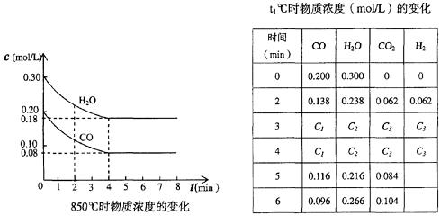(3)t℃(高于850℃)时,在相同容器中发生上述反应,容器内各物质的浓度变化如上表。