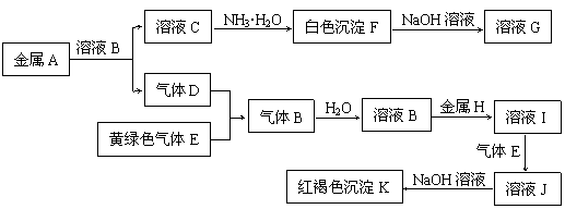物质A、B、C、D、E、F、G、H、I、J、K存在下图转化关系,其中气体D、E为单质,试回答:
