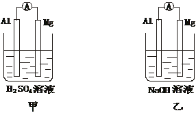 15.甲、乙两位学生均想利用原电池反应检测金属的活动性顺序,两人均使用镁片与铝片作电极,但甲同学将电极放入6 mol·L-1H2SO4溶液中,乙同学将电极放入6 mol·L-1 NaOH溶液中,如下图所示: