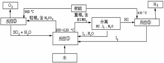 ⑶利用核能把水分解,制出氢气,是目前许多国家正在研究的课题。下图是国外正在研究中的一种流程(硫-碘热循环法),其中用了过量的碘。