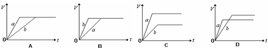 24. 将等质量的a、b两份锌粉装入试管中,分别加入过量的稀硫酸,同时向装a的试管中加入少量CuSO4溶液。下图表示产生氢气的体积V与时间t的关系,其中正确的是