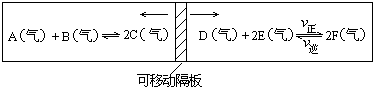 27.(8分)在一个容积固定的反应器中,有一可左右滑动的密封隔板,两侧分别进行如图所示的可逆反应。各物质的起始加入量如下:A、B、C和E均为2.0mol,设D为xmol、F为ymol。当x、y在一定范围内变化时,均可以通过调节反应器的温度,使两侧反应都达到平衡,并且隔板恰好处于反应器的正中位置。
