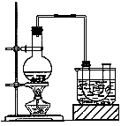①按右图所示连接仪器,检查装置的气密性,然后向U形管和大烧杯里加入冰水;②在圆底烧瓶中加入10mL95%乙醇、28mL浓硫酸,然后加入研细的13g溴化钠和几粒碎瓷片;③小火加热,使其充分反应。
