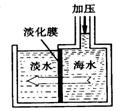 14.海水淡化可采用膜分离技术。如右下图所示,对淡化膜右侧的海水加压,水分子可以透过淡化膜进入左侧淡水池,而海水中其它各种离子不能通过淡化膜,从而得到淡水。