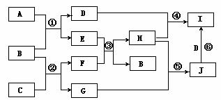 26].A、B、C、D、E、G、H、I、J是中学化学常见的9种化合物(F是单质),A、C是离子化合物,但都存在非极性共价键;E、F、H常温下呈气态,反应①、②、③都是典型的放热反应,反应⑥中还有G生成。其转化关系如下图,据此回答下列问题: