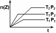 反应2X(g)+Y(g) 2Z △H<0 在不同温度和压强下,产物Z的物质的量与反应时间的关系如图所示。则下列叙述正确的是