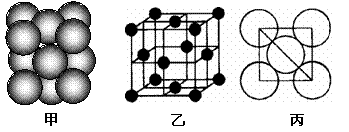 (4)i单质晶体中原子的堆积方式如下图甲所示,其晶胞特征如下图乙所示,原子之间相互位置关系的平面图如下图丙所示。