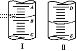4.如右图,图Ⅰ表示10 mL量筒中液面的位置,A与B、B与C刻度间相差1 mL,图II表示50mL滴定管中液面的位置,D与E刻度间相差1 mL。