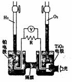 该过程类似植物的光合作用。右图是光照射下TiO2分解水的