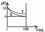 25.常温下,pH=10的X、Y两种碱溶液各1mL,分别稀释至100mL,其pH与溶液体积(V)的关系如右图所示,下列说法正确的是 ( )