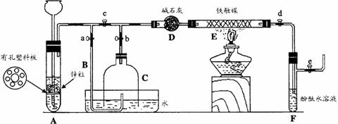 ① 检查实验装置的气密性后,关闭弹簧夹a、b、c、d、e。在A中加入锌粒,向长颈漏斗注入一定量稀硫酸。打开弹簧夹c、d、e,则A中有氢气发生。在F出口处收集氢气并检验其纯度。
