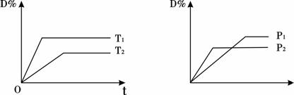 18. 对于可逆反应:mA(g)+nB(s)→p C(g)+qD(g)反应过程中,其它条件不变时,产物D的物质的量分数D%与温度T或压强P的关系如下图,下列说法正确的是: