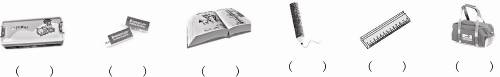 B.Listen twice and write the order to each picture.(听录音两遍,在相应物品的括号内写上序号。)