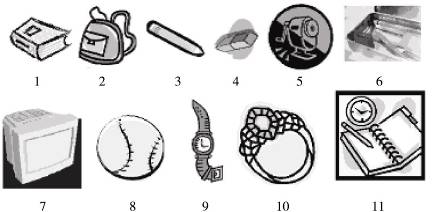 puter 8.baseball 9.watch 10.ring 11.notebook