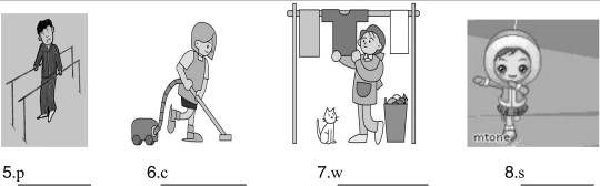 1.play basketball 2.watch TV 3.play games 4.do homework 5.play sports 6.clean 7.wash clothes 8.skate