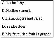 Apples,melons,oranges and bananas are fruits.They are all healthy.We all know them.Some foods are healthy and some are unhealthy.Noodles,rice,beef and pork are healthy,but hamburgers and candy aren't healthy.Milk,water and juice are healthy drinks,but Coke isn't a healthy drink.If you want to be healthy,eat noodles,rice,and some vegetables,like onions,tomatoes,carrots and drink juice,water and milk,not Coke.