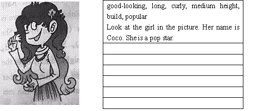 1. look at the picture of Cocco. Please say something about her with the words given.