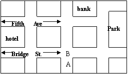 8. B: No, very near. Going out of the bank, you go back to the Fifth Avenue. Turn left and go straight, there is a park on the left.