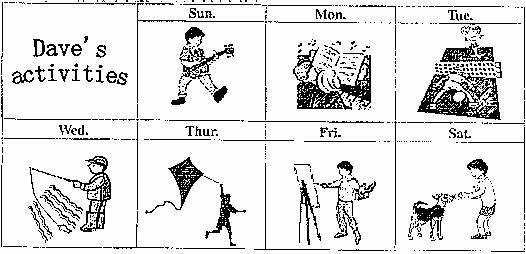 Dave的业余时间是如何度过的呢?请根据下面的图片叙述他上周参加过的活动。开头已给出。(字数50~70)(共6分)