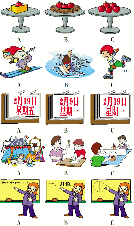II. 听录音,从每组图中选出与你所听到的对话情景相符的那幅图。(10分)