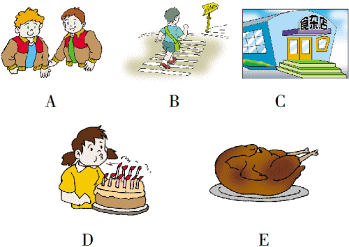 I. 听录音,给所听到的句子选出恰当的图片。(5分)