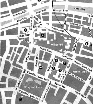 B)Look at the following map.You are telling someone how he can get to the gate of College Park from St.Stephen's Green West.Write it down in about 50 words.