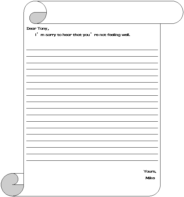 假如你是Mike, 你的朋友Tony病了,头痛且发烧,而且这次考试没有考好。请你写一封信安慰她,并让她去看医生,多喝水,好好休息,病好之后努力学习,争取下次取得好成绩。