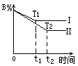 p C+q D,该反应在其它条件不变的情况下,以T1和T2表示不同温度,Ⅰ表示T1时的平衡状态,Ⅱ表示T2时的平衡状态,则下列叙述符合图示的是