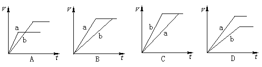 将等质量的两份锌粉a、b,分别加入过量的稀硫酸,同时向a中加入少量CuSO4溶液,下列各图产生H2的体积V(L)与时间t(min)的关系,其中正确的是 ( )