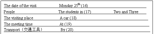 你将听到一篇短文,短文读两遍。请根据短文内容,填写出下面表中的空缺部分。