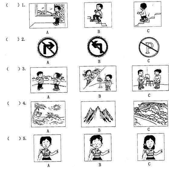 A.听句子,从所给三幅图中选出与所听到的句子情景相同(相近)的图画。每个句子读两遍。(5分)
