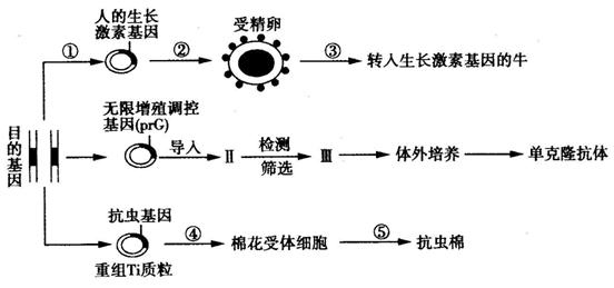 (3)prG基因的产物能激发细胞不断分裂,通过基因工程导入该调控基因来制备单克隆抗体,Ⅱ最可能是 细胞,Ⅲ代表的细胞具有______________________________
