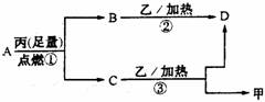 17、(15分)常温下,A是只含X和Y两种短周期元素的气体,X的原子序数小于Y,甲、乙分别是X、Y元素的单质,丙也是某元素的单质。甲、乙、丙和B、C、D都是中学化学常见物质,他们之间有如下的转化关系,请回答下列问题: