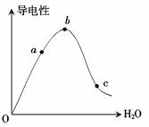 在一定温度下,冰醋酸加水稀释的过程中,溶液的导电性如图。请回答: