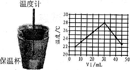 未知浓度的NaOH溶液混合均匀后,测量并记录溶液温度,所得实验结果如右下图所示(实验中始终保持