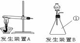(1)仪器①的名称 。请为该反应选择合适的发生装置 。(填A或B)