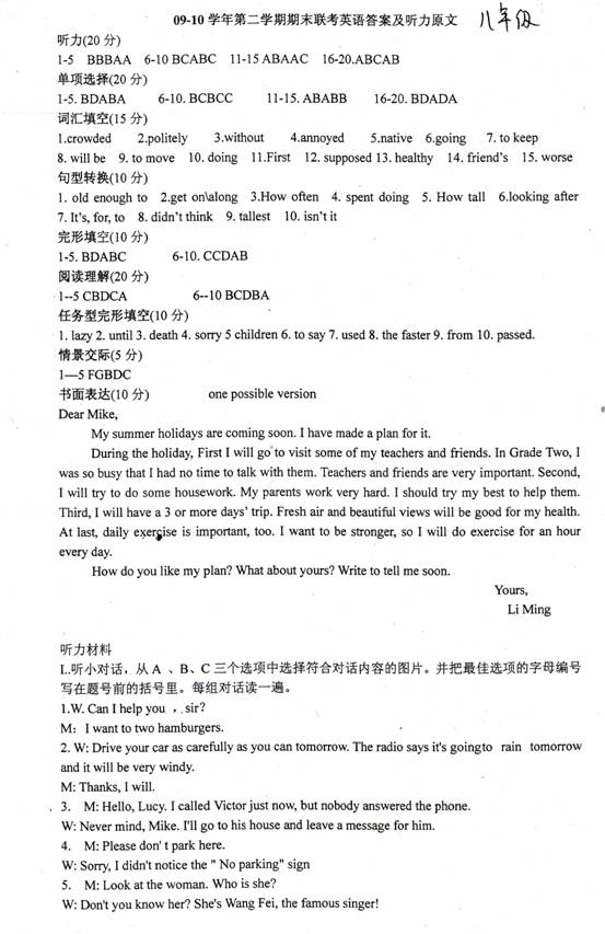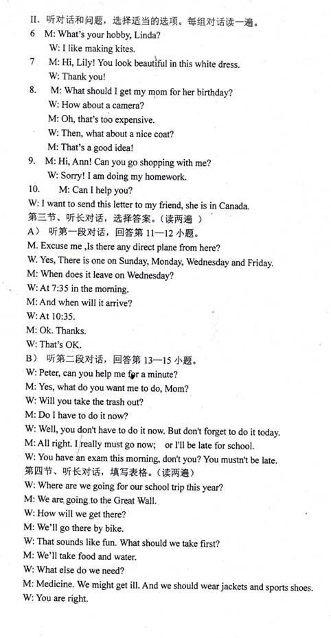 Ⅱ.听对话和对话后的问题,选择最佳答案。每段对话读两遍。