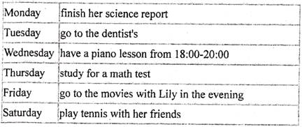 根据下面的表格所提供的内容,把Jane的下周安排写成不少于60词的英语短文,首句已给出。