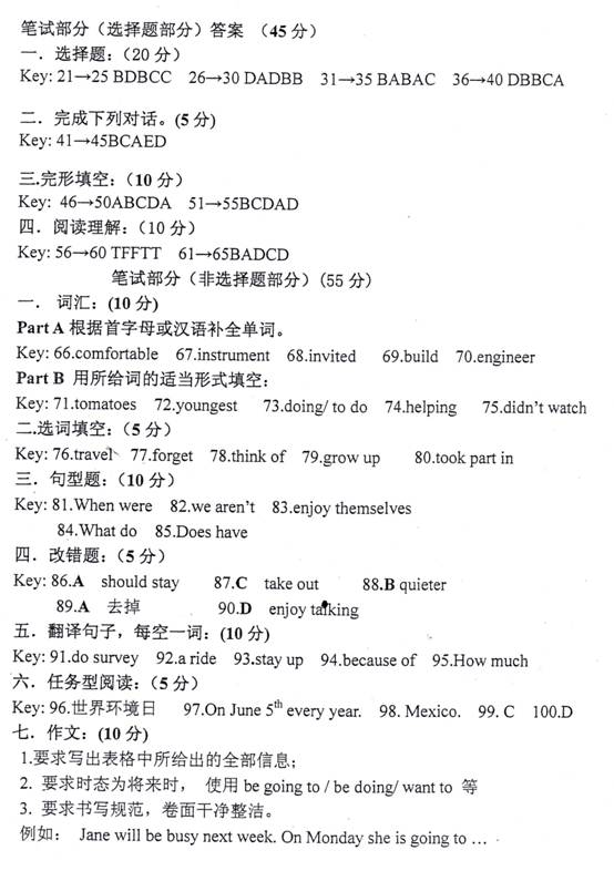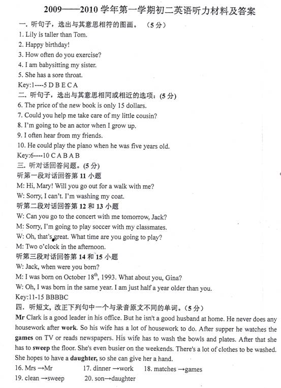 2.第三大题“听取信息”的答案,请用黑色的签字笔或钢笔写在答题卷相应的位置上