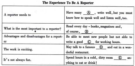 听下面一段独白,请根据题目要求,从所听到的内容中获取必要的信息,填人答题卡标号为A-E的空格中。听录音前,你将有15秒钟的阅题时间。录音读两遍。你将有80秒钟的作答时间。