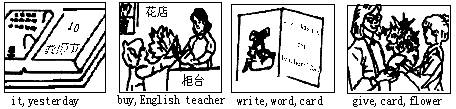 看下面四幅图,通过它们所表达的内容用英语写一篇短文,至少60词。