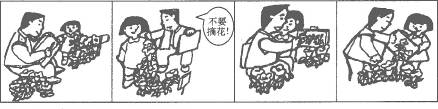 提示语: free , garden , draw pictures , pick the flowers , stop , look after , wrong , go away.