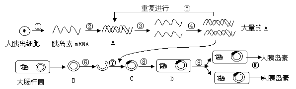 (10分)胰岛素是治疗糖尿病的重要药物。下图是利用基因工程技术生产人胰岛素的操作过程示意图,请据图作答。分析回答下列问题: